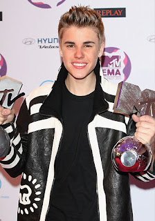 As I'm sure everyone knows, Justin (along with the host - Selena Gomez) went to Belfast for the MTV EMA's. Justin won the award for Best Male, Best Pop, and as I previously posted, the EMA Voice Award. Below is him performing Mistletoe live at the EMAs, and some assorted pictures from the evening.